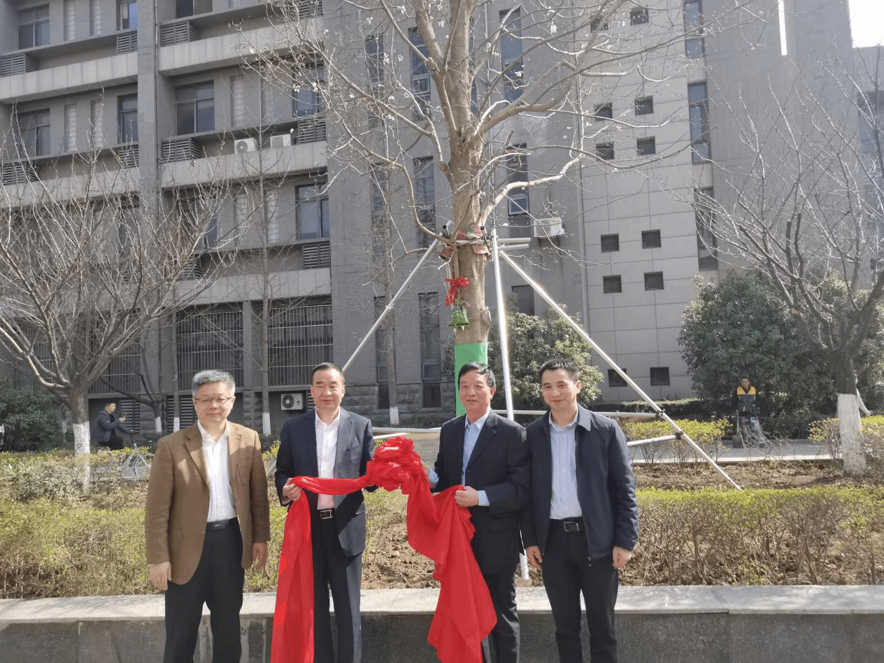 接下来,王伟副会长、王宇波助理,王方胜董事长、巨维博书记共同完成了捐赠白玉兰树的揭牌仪式。