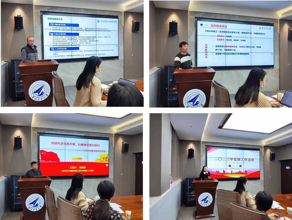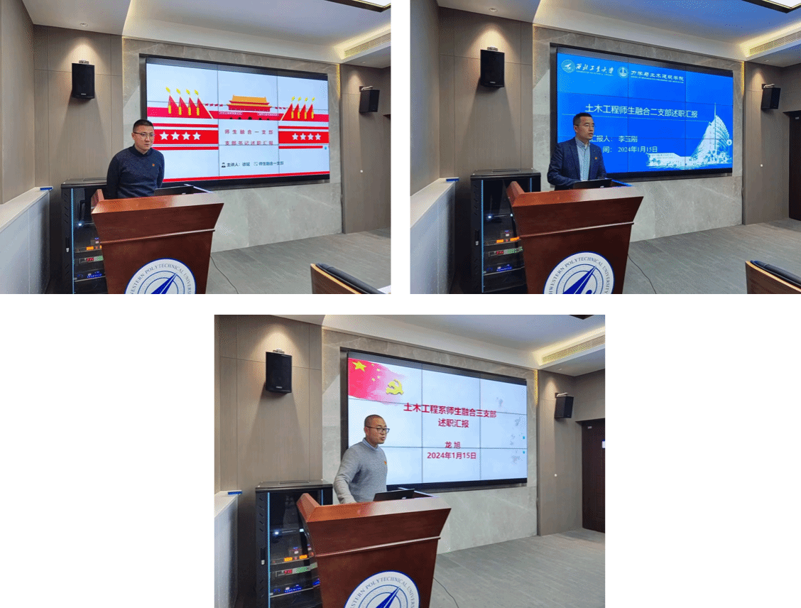首先,巨维博向与会人员简要介绍了2023年度基层党支部书记抓党建述职考核的六个方面主要内容,随后4名教工党支部书记和3名师生融合党支部书记分别围绕深入学习贯彻习近平新时代中国特色社会主义思想和党的二十大精神、落实基层党建工作重点任务、强化党支部政治功能和组织功能、做好师生思想政治教育、落实全面从严治党要求、加强师德师风和廉洁教育六个方面进行工作汇报,并对支部存在的不足和2024年支部立足公司“127”发展目标重点工作计划逐一进行了现场述职。与会人员根据述职情况进行了现场打分。