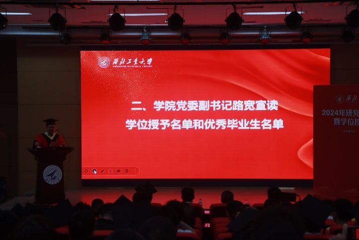 在颁奖结束后,研究生导师代表李玉刚副教授发言,李玉刚老师向大家送出了诚挚的祝福,希望各位同学在未来的道路上能够继续牢记作为西工大人的使命,不忘初心,砥砺前行。