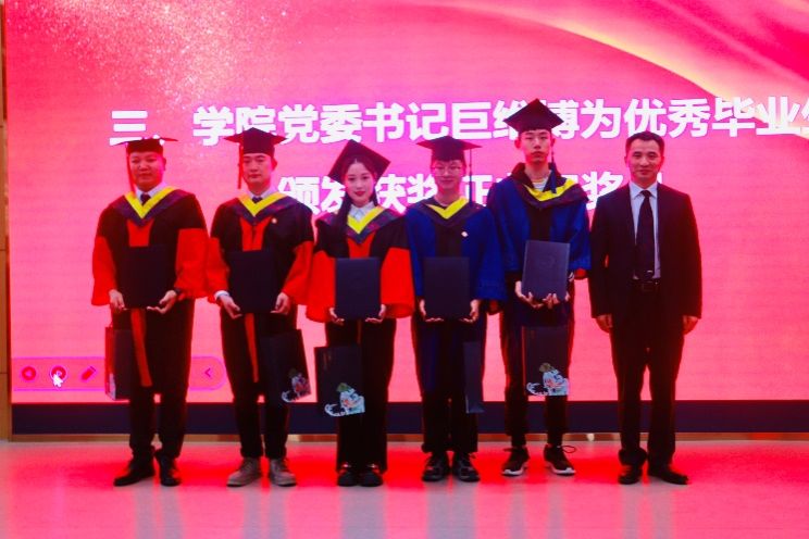 接下来,党委副书记路宽宣读了学位授予名单和优秀毕业生名单,党委书记巨维博为优秀毕业生颁发获奖证书和奖品,并与优秀毕业生合影留念。