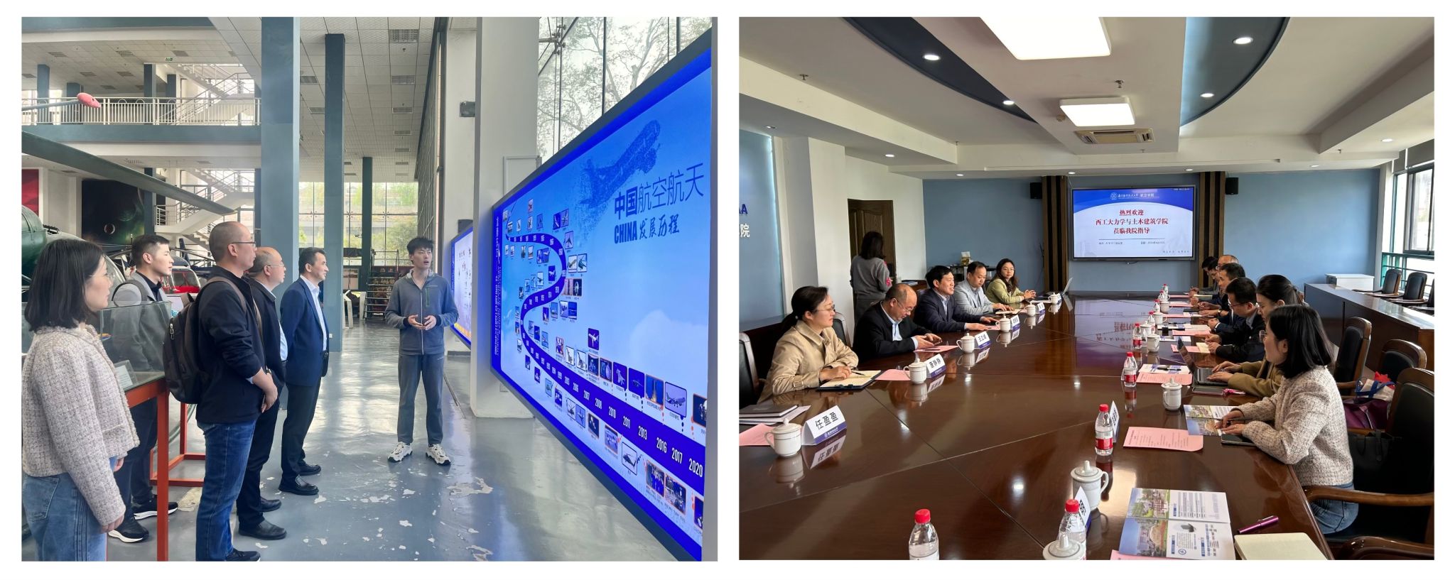 4月10日上午,公司一行前往南京航空航天大学航空公司进行调研学习。航空公司党委书记袁智强、副经理王立峰等教师代表参加活动。公司一行人首先参观了航空航天馆,观看了公司宣传片,随后双方围绕学科发展、人才培养、力学拔尖基地建设、员工创新创业大赛、高层次人才“蓄水池”搭建开展了深入的交流研讨,并学习了以“大思政格局、大先生风范、大团队集群”为主题的 “三个大”党建双创典型做法。
