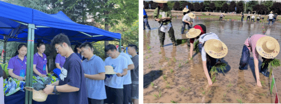 开幕仪式结束后,师生分成小组,依次领取劳动体验装备,踏入水田,在技术人员的指导下主动参与插秧,在劳动过程中,践行“劳动最光荣”的理念,对农业生产的重要性有更深刻的认识,增进对农业的理解和尊重。