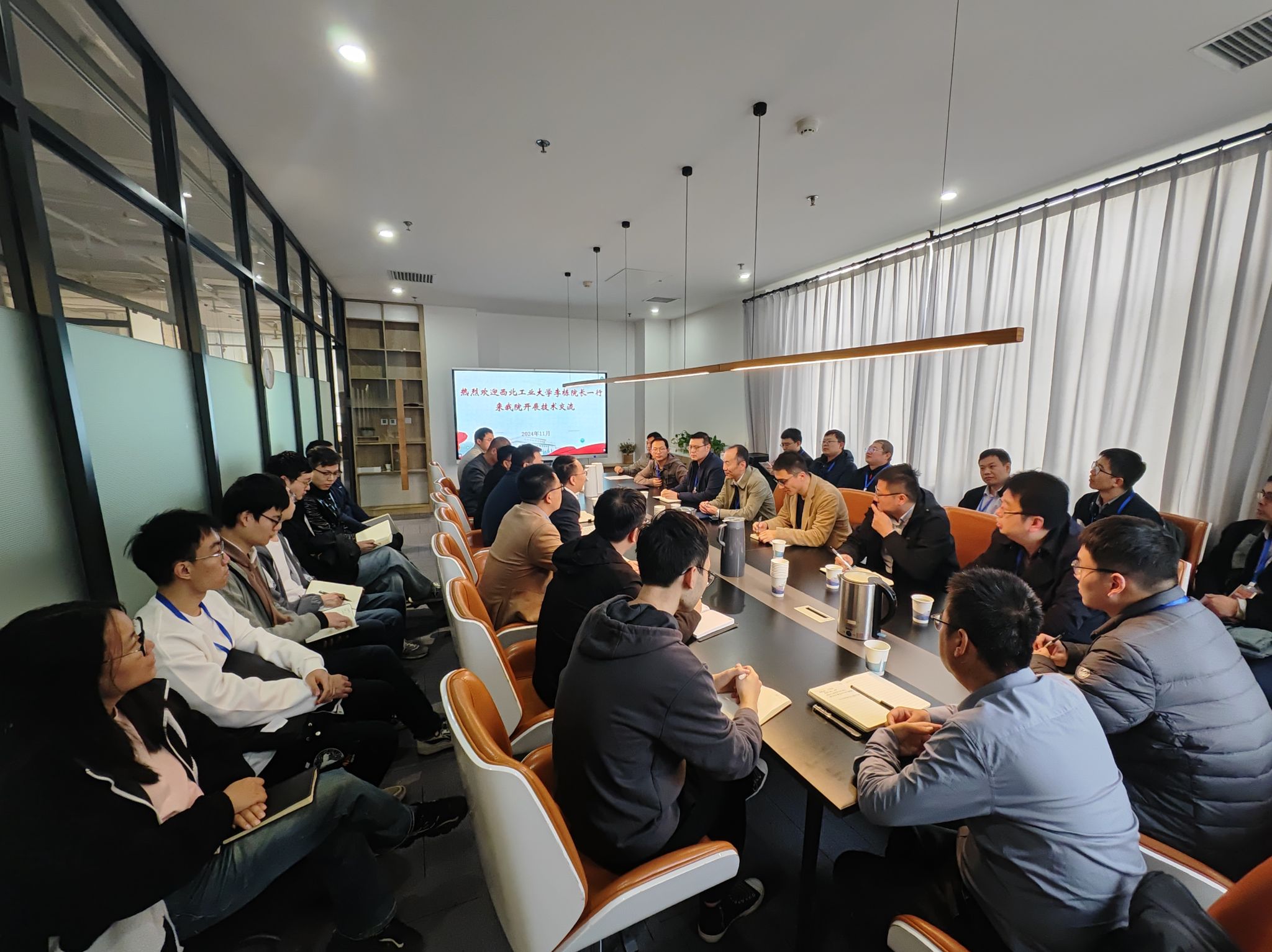 203所集群与巡飞弹药总体部主任赵军民带领团队骨干对李栋经理一行的到来表示热烈欢迎,并就近期开展的重大工程项目的关键技术问题进行了介绍,副经理张凯就公司总体情况及主要科研团队进行了介绍。李栋经理表示此次调研旨在通过“1-0”回溯性基础攻关,以科研项目合作为抓手,建立稳定持续性的校企合作渠道。