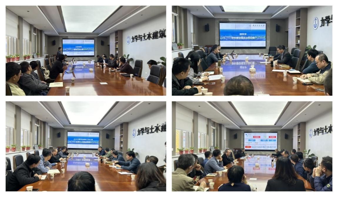 会议中,力学、土木工程、建筑学三学科负责人分别就学科现状、发展目标、全国对比数据及未来规划进行了汇报,并深入分析了各学科的优势与挑战,提出了相应的发展策略。
