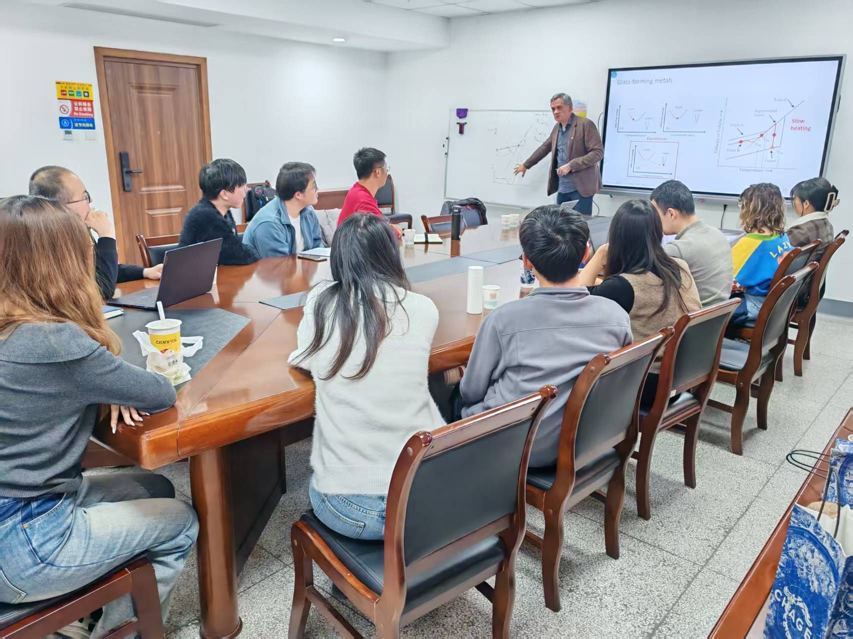 报告会现场气氛热烈,Eloi Pineda教授深入浅出的讲解引发了师生们的浓厚兴趣。在互动环节中,与会师生踊跃提问,围绕非晶态固体的弛豫机制、模型应用以及实验技术等方面与Eloi Pineda教授展开了深入交流。Eloi Pineda教授耐心解答了每一个问题,并分享了他在科研过程中的宝贵经验和见解,现场掌声不断。