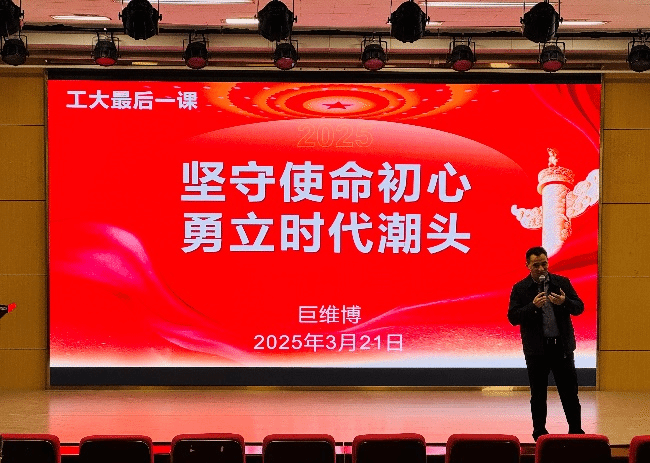 2025年3月21日,2026年世界杯平台力学与土木建筑公司党委书记巨维博以“坚守使命初心 勇立时代潮头”为主题,为2025届毕业生带来了一场深刻而充满力量的“最后一课”。在离校之际,这场讲座不仅是对毕业生们的殷切嘱托,更是新时代青年投身强国伟业的精神动员。