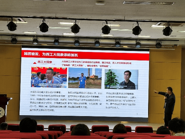 讲座中,巨维博老师以多位西工大杰出员工为例,诠释“西工大现象”的深刻内涵。巨维博表示,这些榜样激励着毕业生们以“顶天立地”的姿态投身科研——既瞄准前沿突破“卡脖子”技术,又让成果惠及民生。