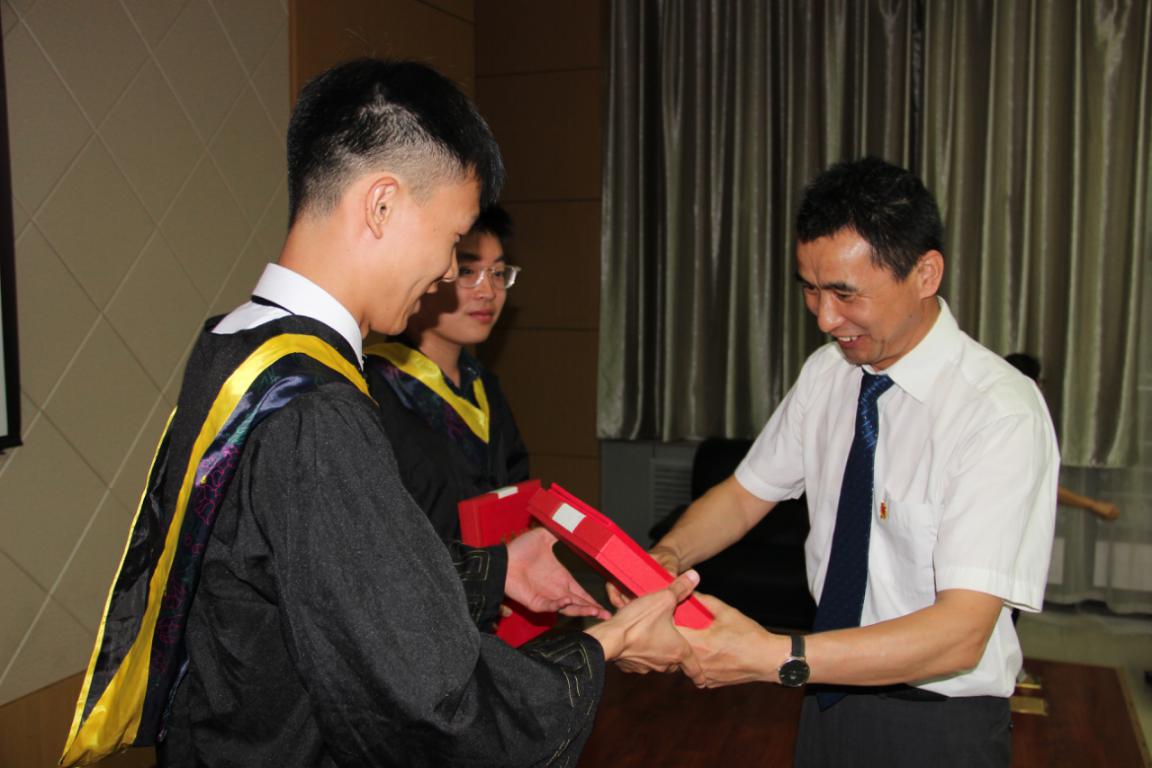 党委副书记(主持工作)巨维博为优秀毕业生颁发获奖证书和奖品,并与优秀毕业生合影留念。