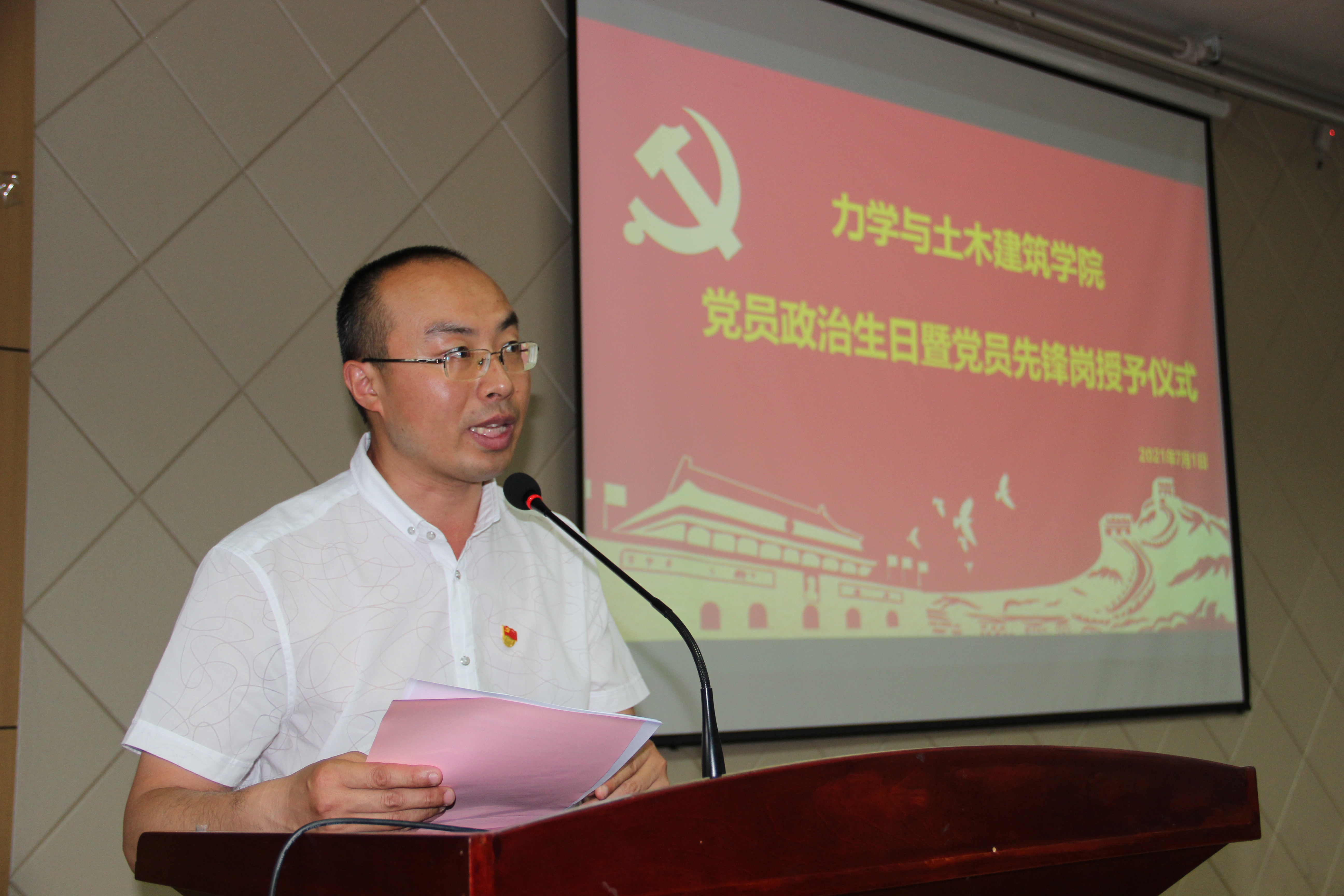 在中国共产党成立100周年之际,为进一步强化党员宗旨意识,发挥共产党员先锋模范带头作用,力学与土木建筑公司党委举行党员政治生日暨党员先锋岗授予仪式。公司党委委员、班子成员、支部书记、64名师生党员先锋岗、6、7月过政治生日师生党员参加了本次会议,党委副书记乔吉超主持会议。