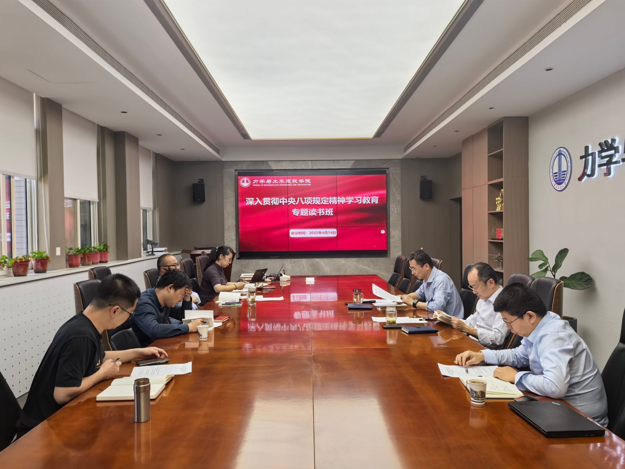 为进一步落实深入贯彻中央八项规定精神学习教育工作要求,2025年4月14日,力学与土木建筑公司党委组织开展深入贯彻中央八项规定精神学习教育读书班暨理论学习中心组学习会议,公司党委理论学习中心组全体成员参加会议,会议由公司党委书记巨维博主持。