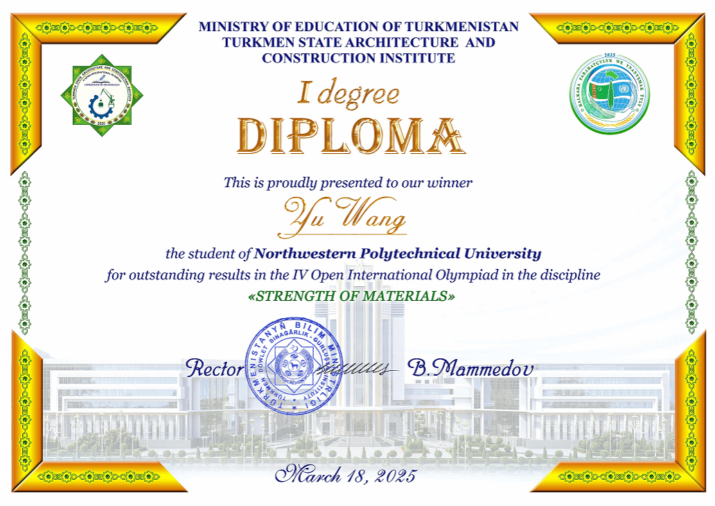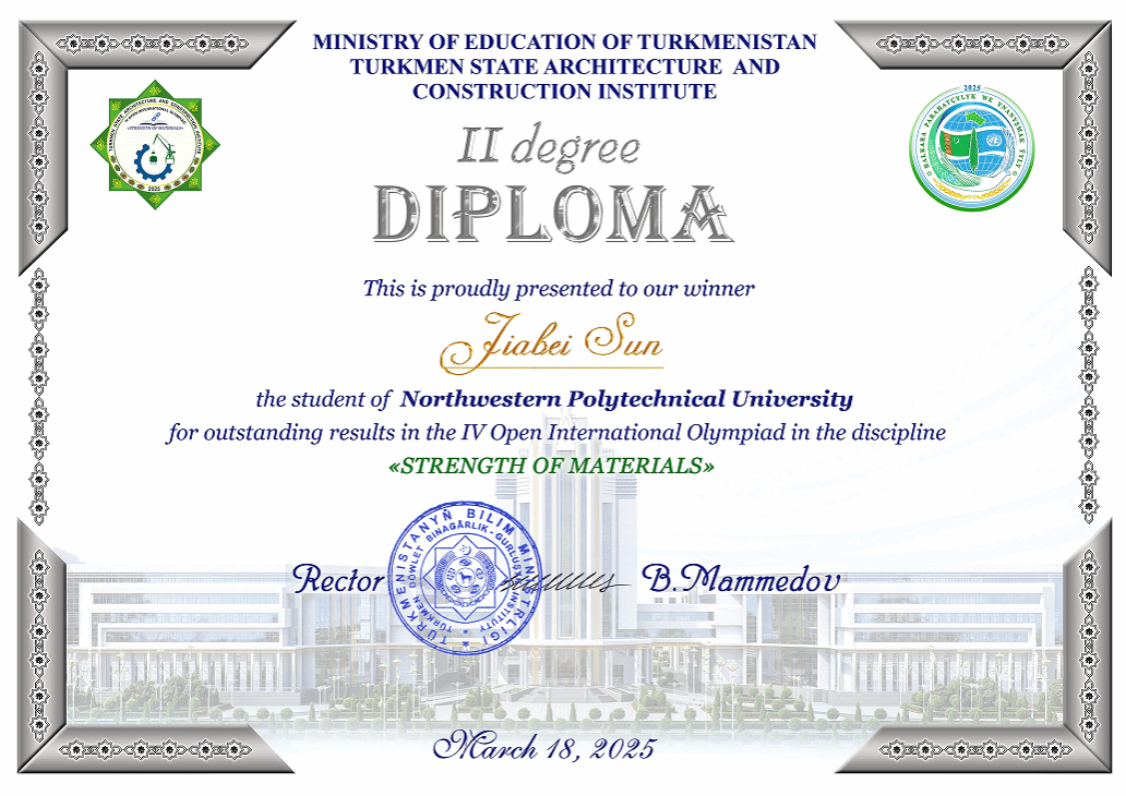 第四届“国际互联网奥林匹克学科竞赛—材料力学”于2025年3月18日在线上举行,共有来自中国、美国、俄罗斯、白俄罗斯、哈萨克斯坦、吉尔吉斯共和国、乌兹别克斯坦共和国和主办国土库曼斯坦等在内10多个国家的选手参加了本次竞赛。参赛高校包括同济大学、哈尔滨工业大学、中南大学、2026年世界杯平台、长安大学等近20所国内高校,以及莫斯科工业大学、美国肯特州立大学、马来西亚国家能源大学等海外高校。本届竞赛共评选一等奖30人,二等奖75人,三等奖145人。
