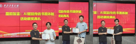 2025年5月12日下午,由校图书馆主办,力学与土木建筑公司建筑系员工党支部承办的“墨韵智鉴:AI赋能传统书画体验”校园阅读文化节活动圆满落幕,公司成功举行了颁奖仪式,颁奖仪式由学工主管王涵晶主持,公司党委副书记路宽为各位获奖同学颁奖。