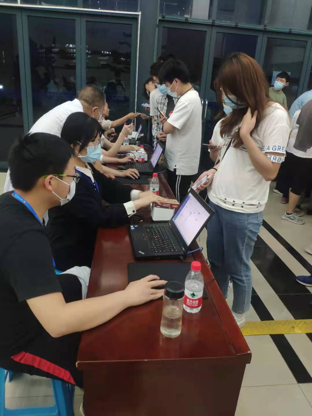室内接种台工作组帮忙维护现场秩序,规划排队人流,及时宣传疫苗接种流程和接种后人员信息登记。
