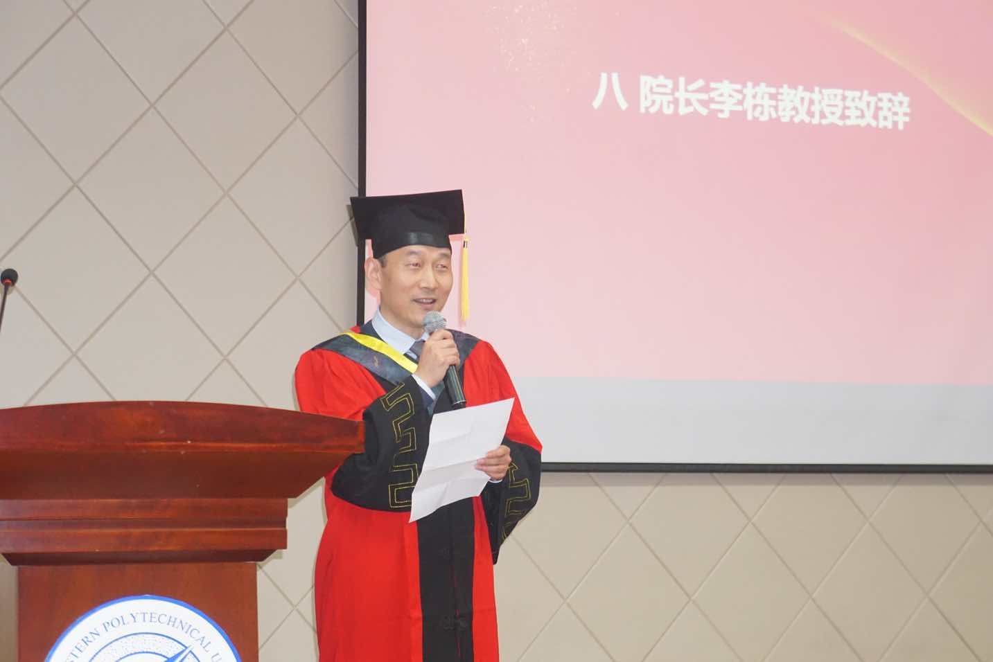 经理李栋教授结合自己的求学经历深情地给毕业生寄语,他谈到,研究生的培养,以培养解决问题的能力为核心,期许大家毕业以后要保持身体健康与事业投入的平衡,找到自己的方向,不要松懈,开创新阶段的时候要做好计划,做到心里有数,保持西工大人“三实一新”的作风,“三实”做基础,“一新”做开拓。他还祝福同学们成功获得学位,代表公司感谢同学们对公司和公司的热爱、宽容、理解。