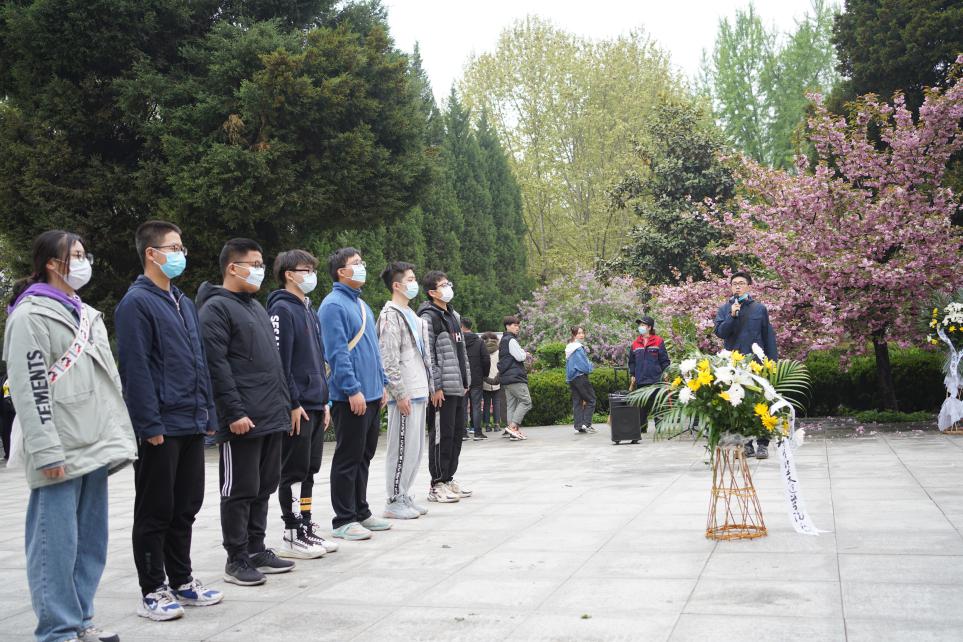 随后,师生一行参与了“守护·2021晴明祭英烈”活动,由贾悦老师主持,向逝去的英烈们致词,在庄严的氛围下,全体同学为英烈们默哀三分钟,向英烈们表达我们沉重的哀悼与崇高的敬意,最后由赵志伟同学和毛仁昊同学向烈士敬献花篮。全体同学肃立整齐,向革命烈士行三鞠躬,深刻表达出对烈士的崇敬与尊重。