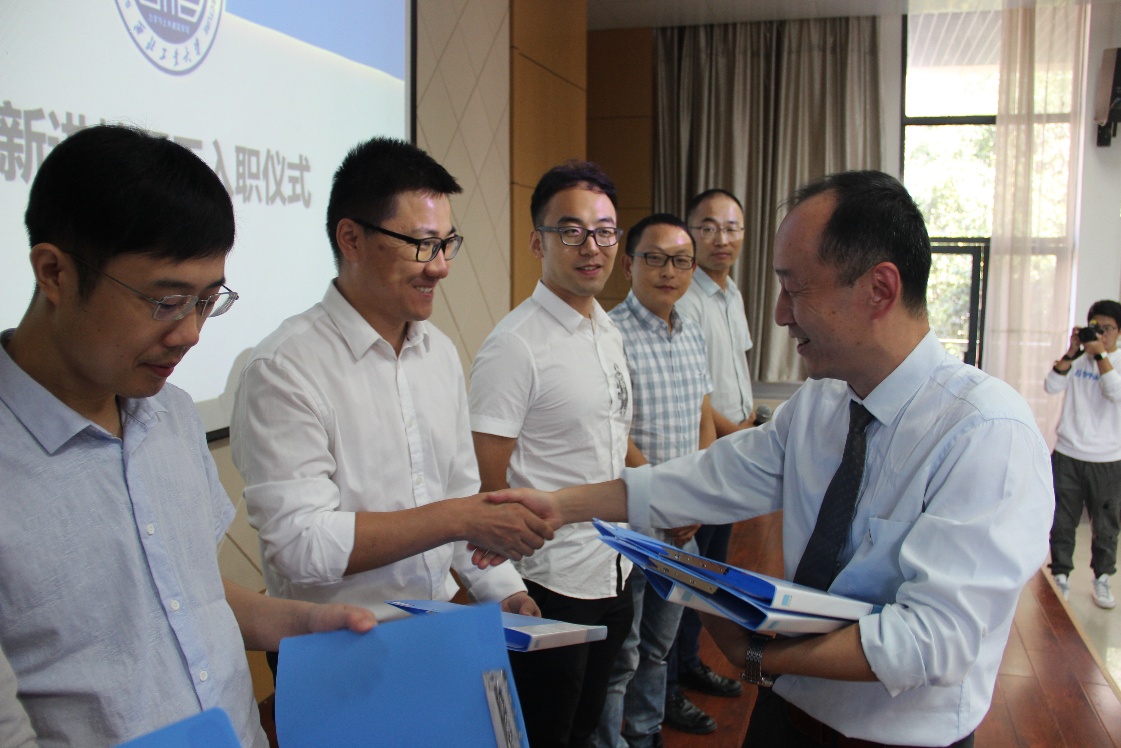 最后大会还为新进教职工举行了入职仪式,李栋经理为大家颁发任务书、佩戴院徽并合影留念,新进教师纷纷发言表态,希望为公司的发展建设尽一份力,李栋经理也对大家给予了深切的期望。