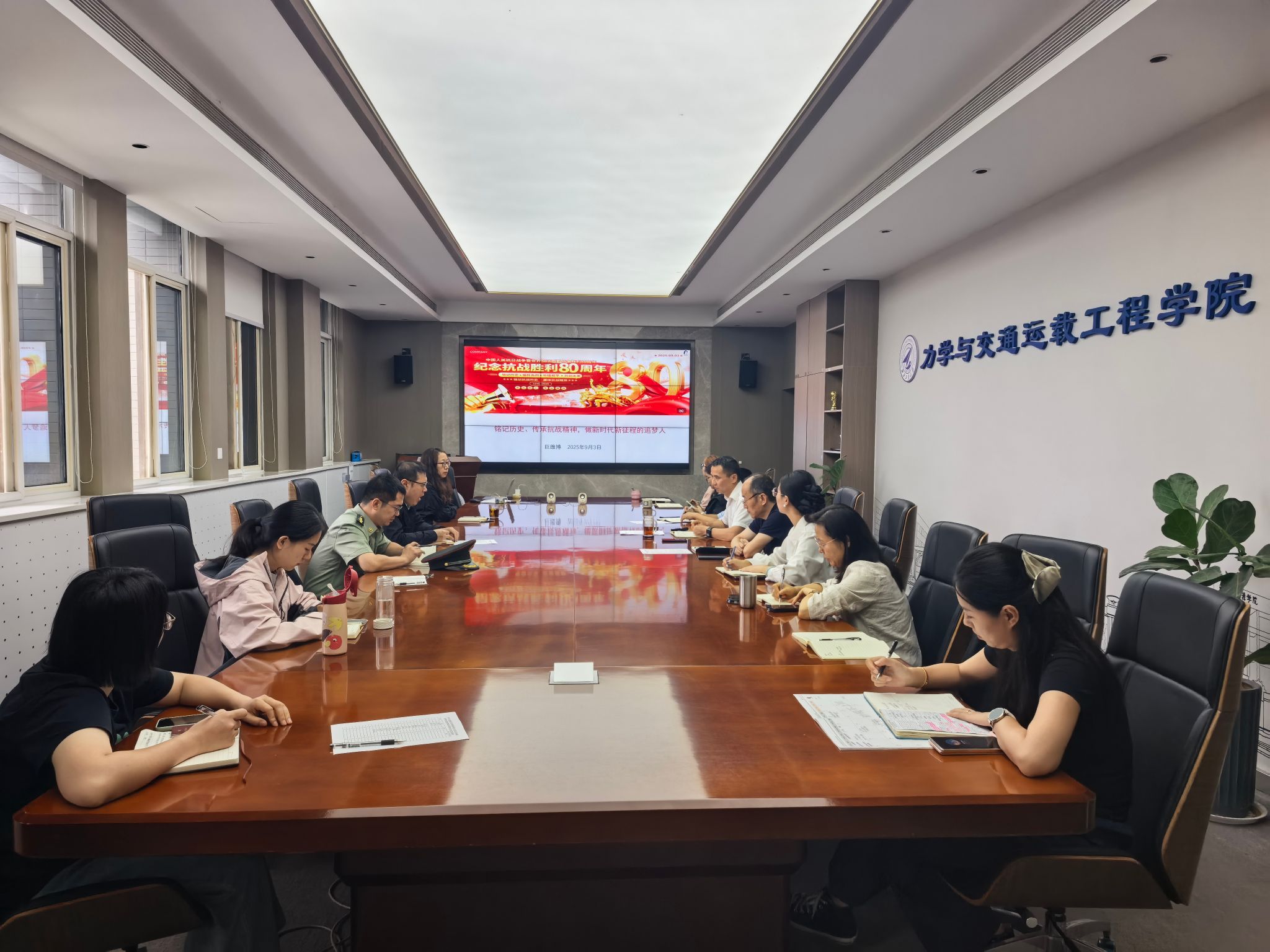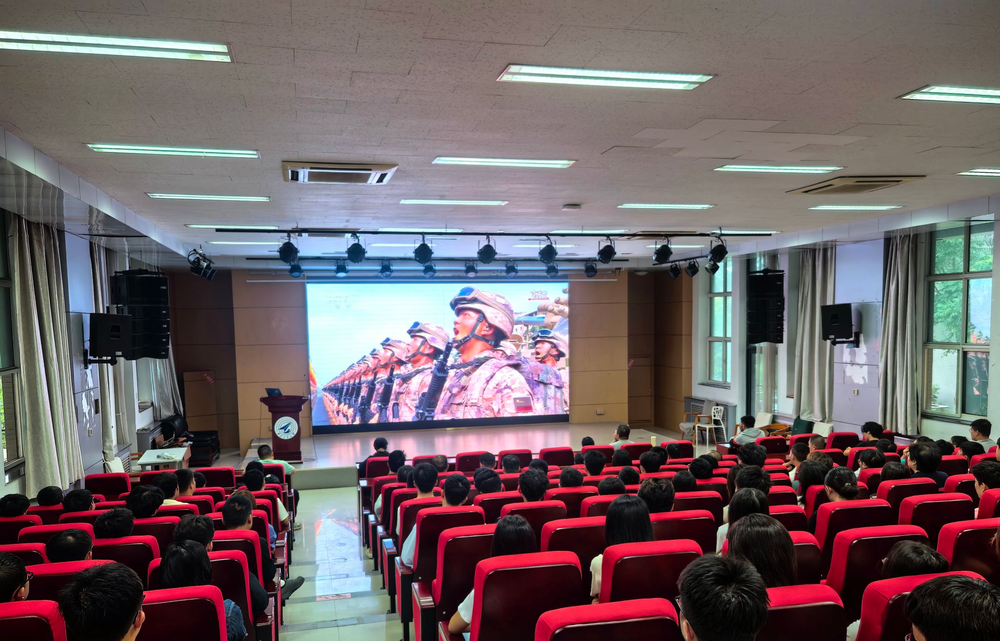 上午9时,大会直播准时开始。公司206会议室、学术报告厅、延安精神党员活动室座无虚席,全院师生认真聆听习近平总书记重要讲话,观看阅兵式见证国家雄伟力量。当镜头掠过抗战老战士老同志,当嘹亮的军歌响彻天安门广场,当步履矫健的作战方队和现代化军事装备精彩亮相,师生深刻感受到中华民族在抗日战争中展现出的 “天下兴亡、匹夫有责” 的爱国情怀与工大人献身军工国防的使命担当。