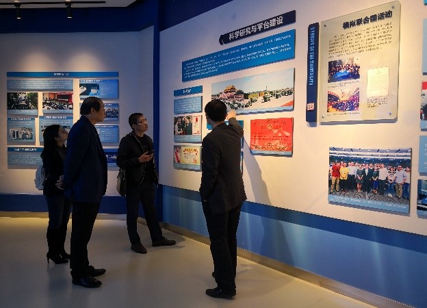 当日,华森公司总经理刘萍昌先生、建筑总工程师教授级高工汤文健女士、结构总工程师教授级高工李力军先生,人力资源经理兰卫卫女士及两位设计师代表首先来到长安校区校史馆,公司党委书记高大力向对方介绍了公司的历史沿革、专业特色和办学成果。