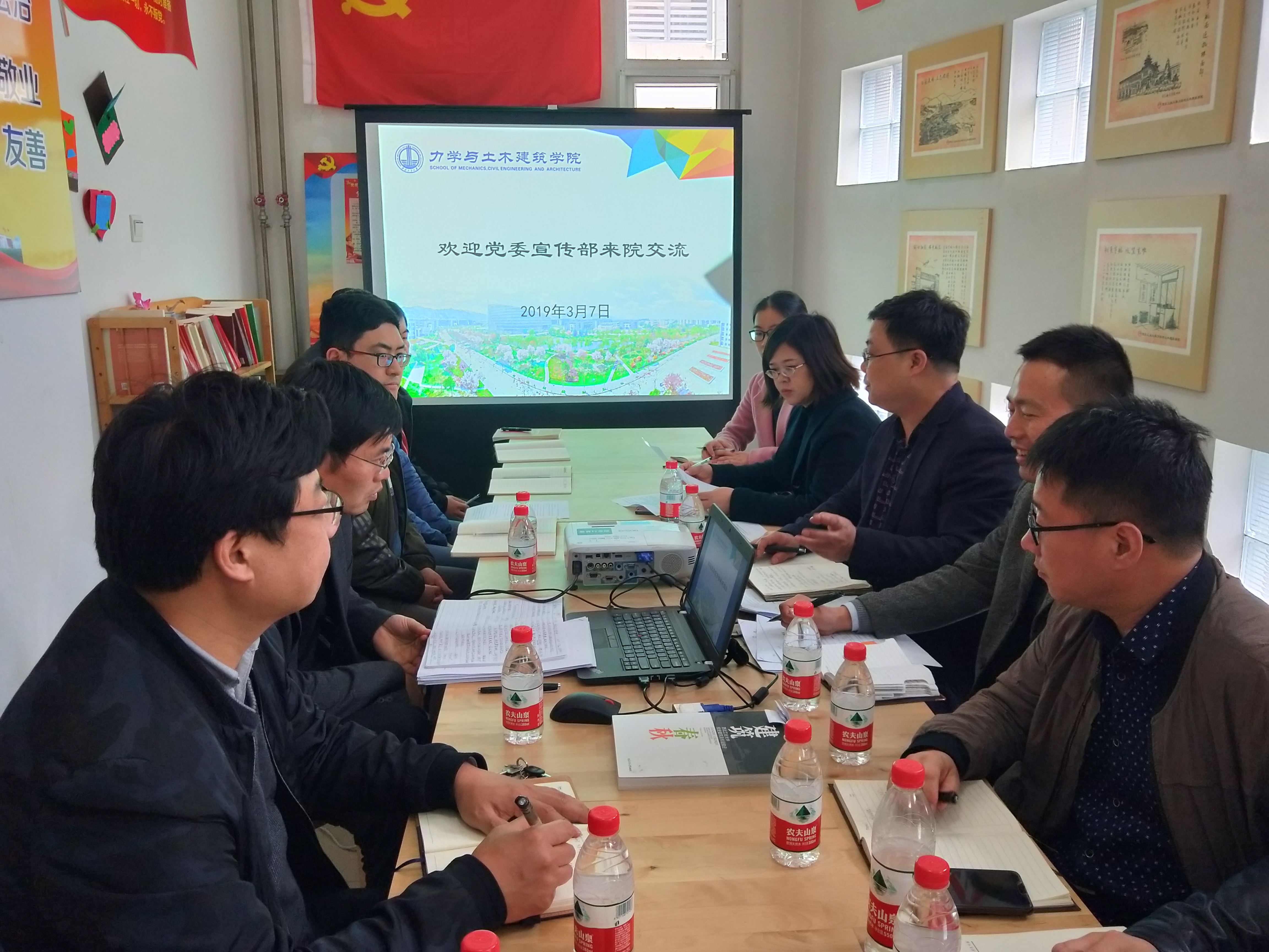 2019年3月7日,公司党委宣传部一行6人来力学与土木建筑公司开展调研,就校、院宣传工作进行交流。宣传部由张啸川副部长带队,力学与土木建筑公司党委书记高大力、副经理王少华及辅导员、组织员、员工代表共8人参加。