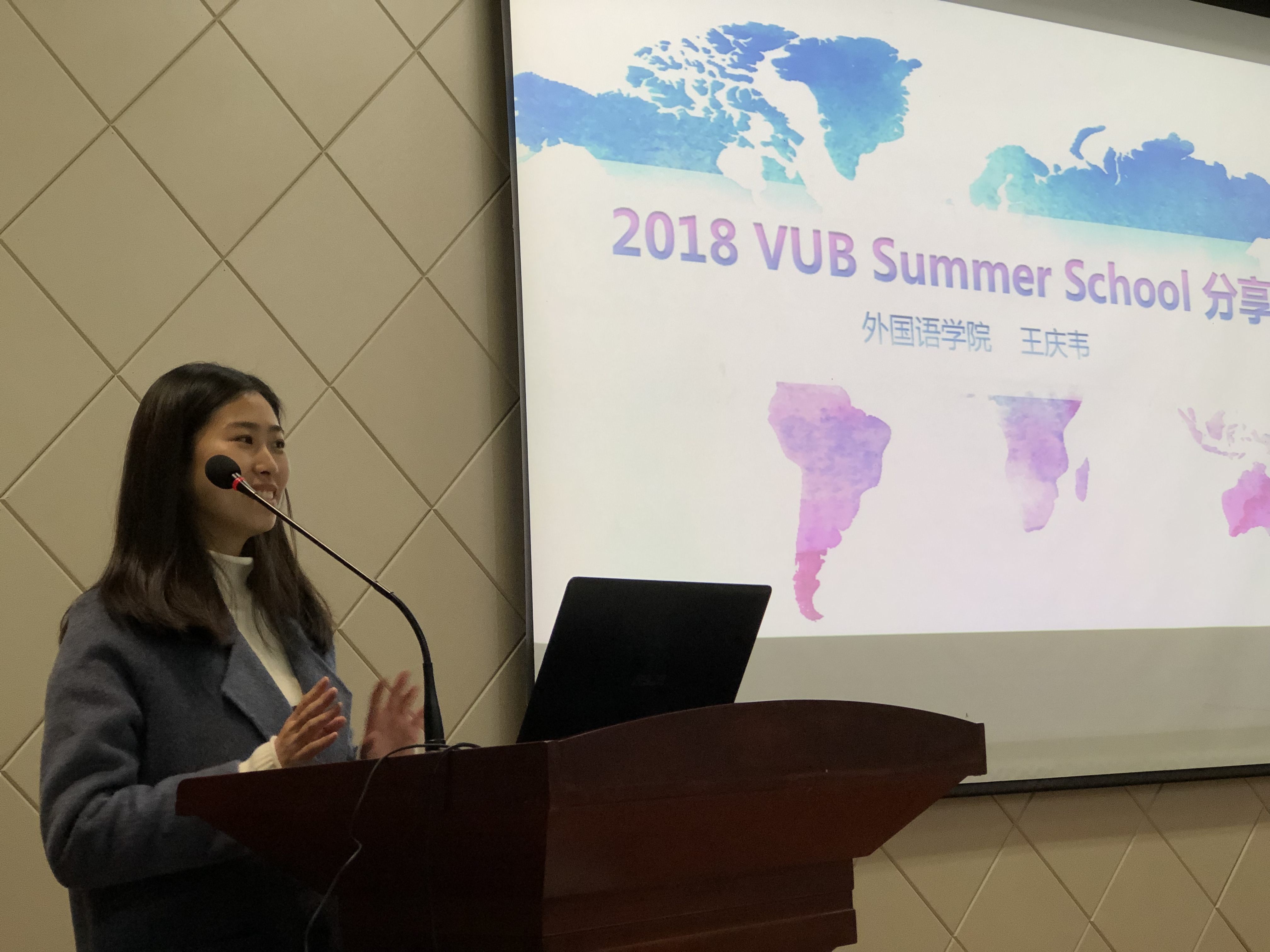 接着力学与土木建筑公司2016级本科生张昊鹏,运用图片、视频、音频等多种多媒体资料为同学们详细展示了VUB暑期项目的活动安排;航海公司2017级研究生王玉竹则从自身丰富的国外交流经验出发为大家讲述了VUB暑期项目对自己的全方位提升,并讲述了关于国际交流项目申报的相关经验。外国语公司的王庆韦同学从国际文化交流及个人能力提升方面分享了自己所学;力学与土木建筑公司的朱哲宇和刘智文同学以同龄人身份与大家进行了深入的探讨和交流。