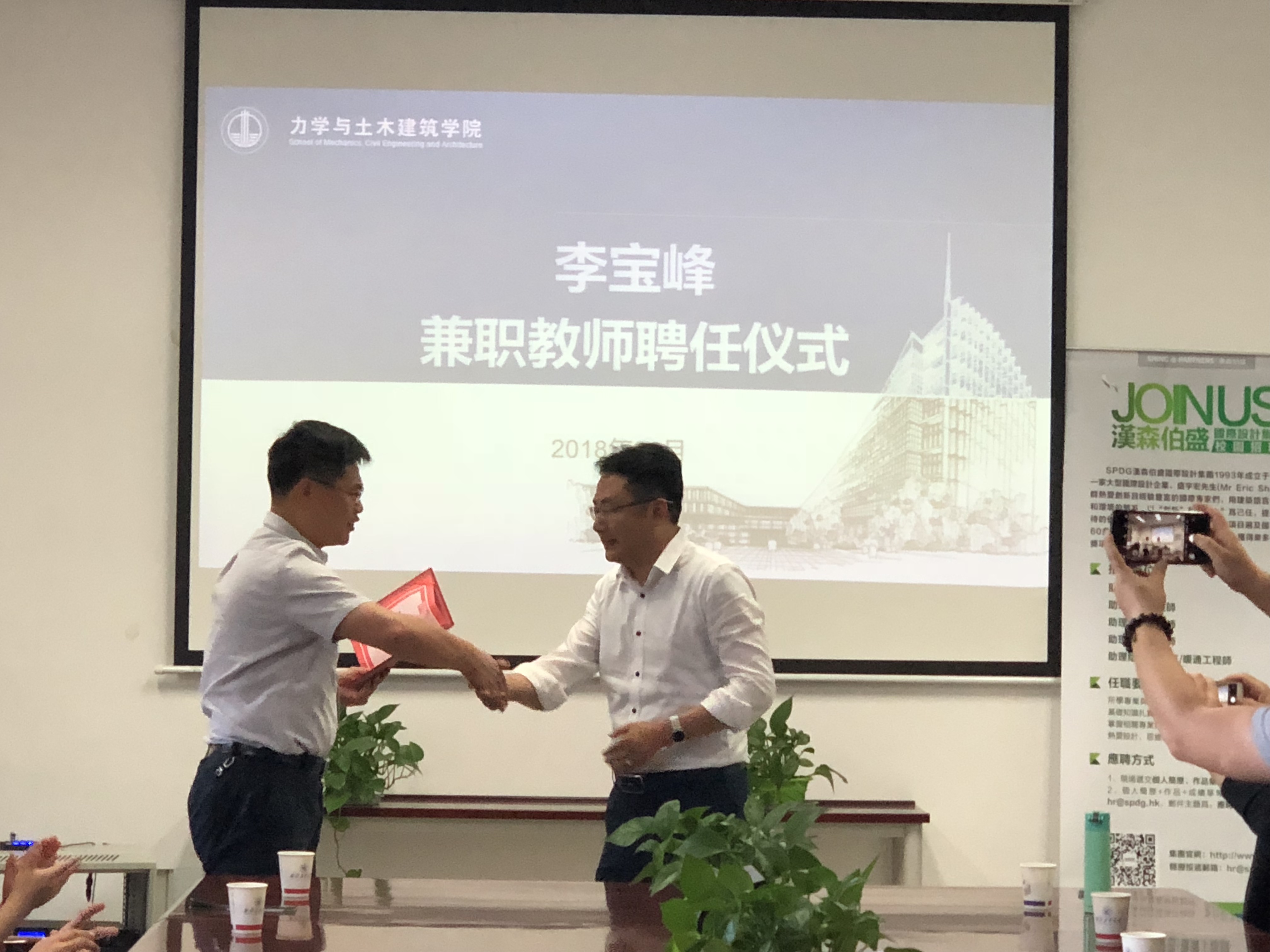 6月9日,李宝峰兼职教授聘任仪式暨汉森伯盛实习生招聘宣讲会在力学与土木建筑公司公司楼206举行。党委书记高大力老师,建筑系芦旭老师,曹健老师参加了本次会议。