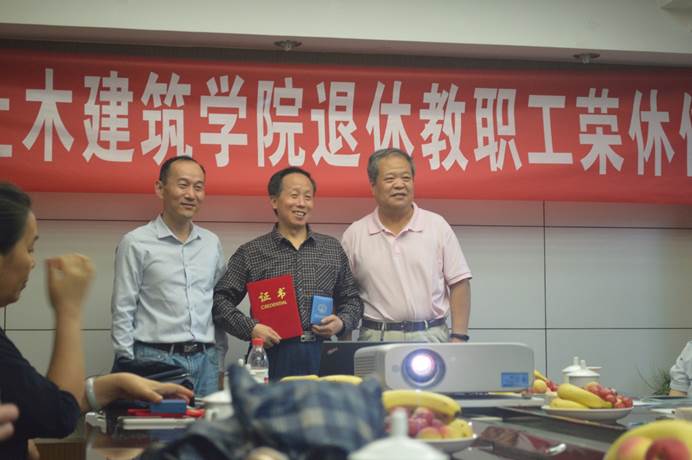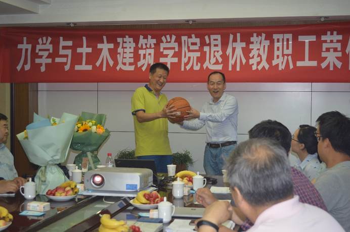 仪式上,高大力代表公司对荣休教师为公司发展做出的积极贡献表示衷心的感谢和崇高的敬意。李栋讲话,他表示公司永远是教师的家,将全心全意地为退休教师解决困难,并希望退休教师能一如既往地关心公司的发展,为公司提出宝贵意见和建议。李栋和工程力学系教授苟文选为他们送上鲜花、公司荣誉勋章及纪念证书,并为公司篮球队指导教师韩小平老师送上了一份珍贵的礼物——“三航杯”三连冠全体队员签名的篮球,仪式最后全体合影留念。