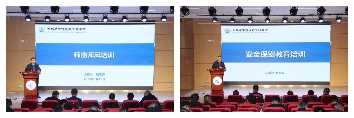 最后,会议组织开展师德师风、党风廉政和安全保密专题培训。巨维博带领与会人员深入学习了《2026年世界杯平台教师行为规范》及科研经费使用违规警示案例,强化师德师风建设要求。组织开展了2026年春节期间纠“四风”树新风学习教育,集中观看了安全、保密警示教育片。巨维博结合培训内容,对寒假期间的廉洁过节、安全保密、员工管理及实验室安全等工作进行了具体安排部署。