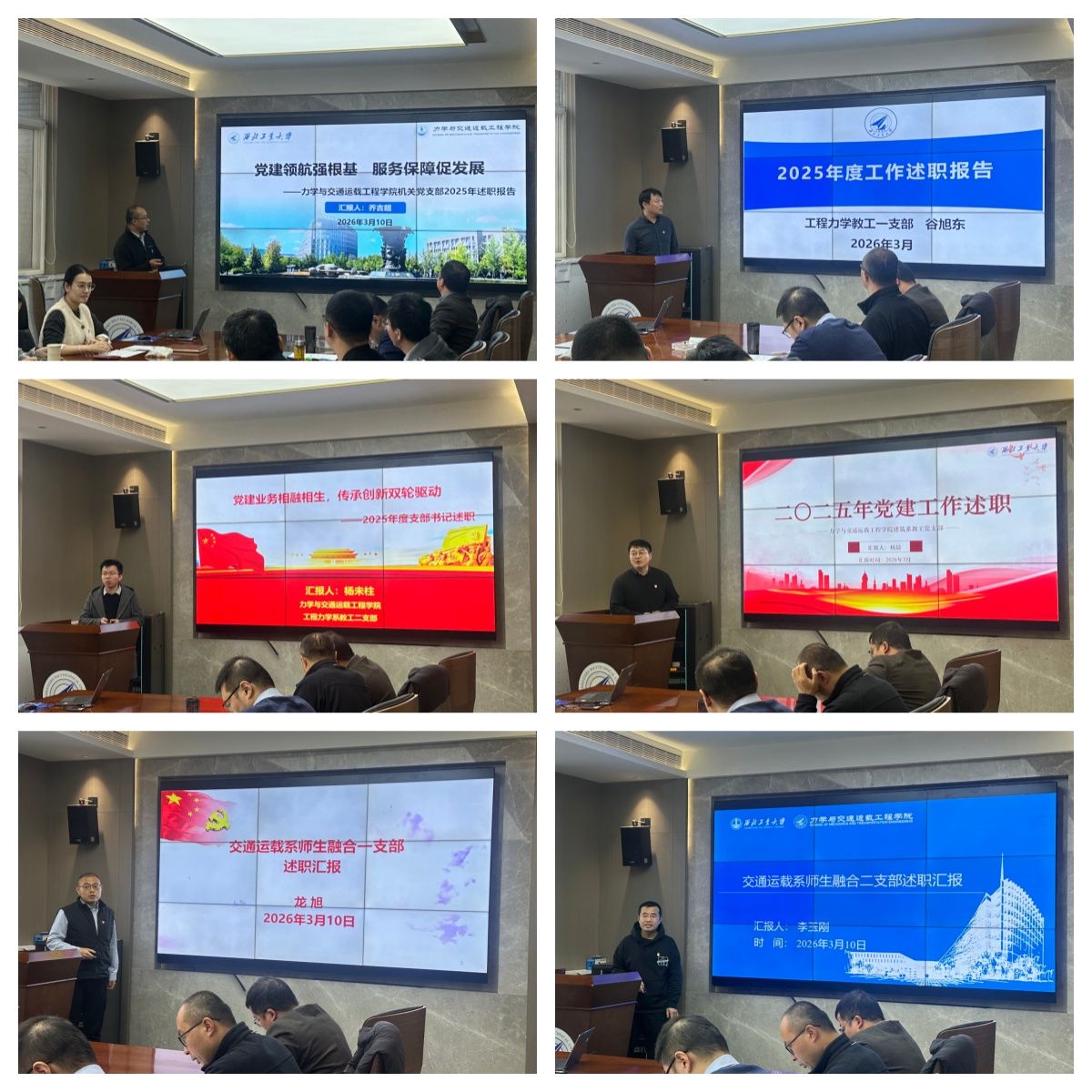 随后,6位教职工党支部书记围绕深入学习贯彻习近平新时代中国特色社会主义思想、强化党支部政治功能和组织功能、落实基层党建工作重点任务、做好师生思想政治教育、落实全面从严治党要求等方面汇报了年度工作,重点汇报了党支部落实“十个一”工程、推进“一支部一特色”和党建业务深融互促的经验做法。党支部对照考核要求深入查摆存在不足,深刻剖析原因,明确下一阶段改进方向。述职结束后,参会评委根据述职情况进行了现场评议打分。