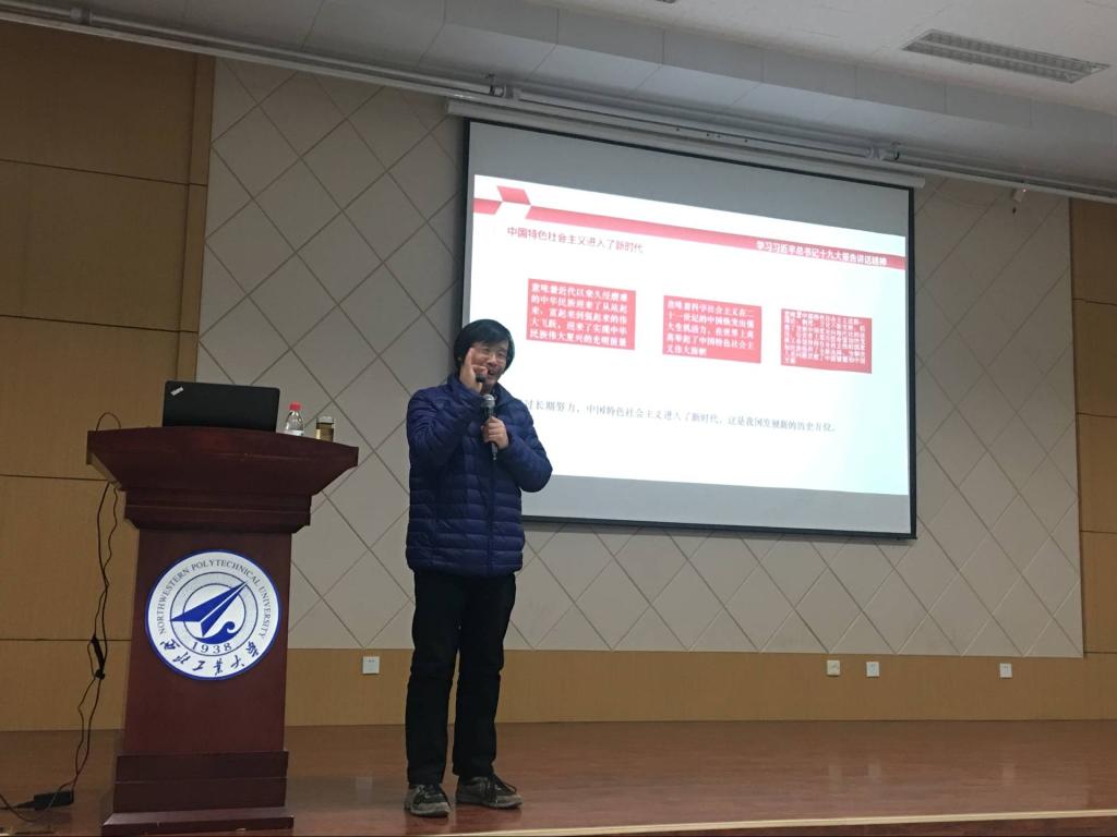 为深入学习贯彻党的十九大精神,12月13日,公司邀请马克思主义公司高宝营副教授为公司师生讲授专题党课。党课由辅导员牛茂贵主持。
