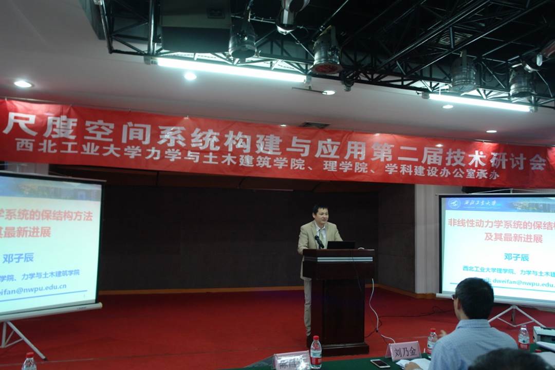 上午,南京航空航天大学金栋平教授、钱学森空间技术实验室李萌高级工程师和公司邓子辰教授分别做了题目为“柔性航天器状态一致与自主组装控制”、“超大型空间系统设计与运行中的若干问题研究”及“非线性动力学系统的保结构方法及其最新进展”的大会报告。下午,大连理工大学吴志刚教授、浙江大学邓华教授和北京理工大学张景瑞教授分别做了题目为“空间太阳能电站在轨动力学与控制问题研究”、“空间结构的数字技术应用和进展”和“航天器动力学与控制中的若干问题”的大会报告。各位专家对各自的研究领域的关键科学问题进行了深层次的介绍,展示了他们最新的科研成果,针对共同感兴趣的科学和技术问题分享他们的见解,引起了现场专家学者的积极讨论。