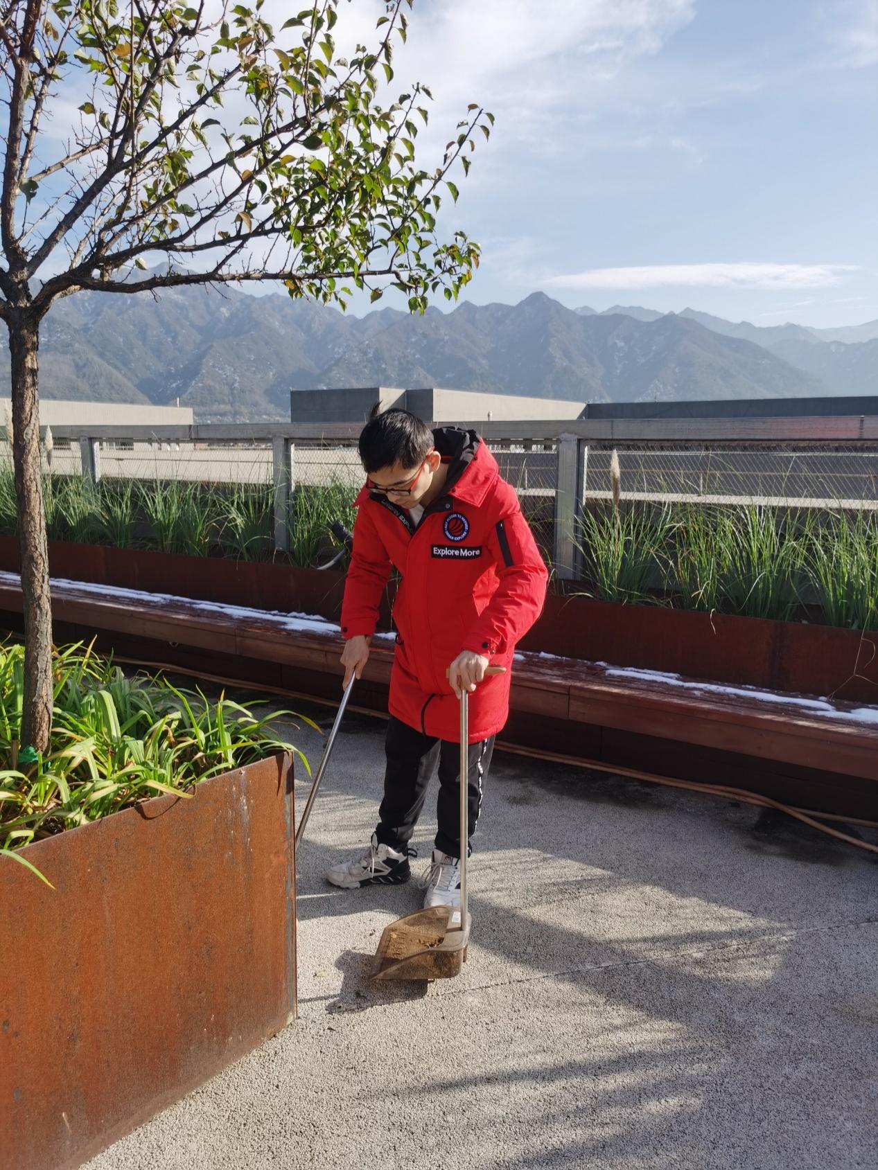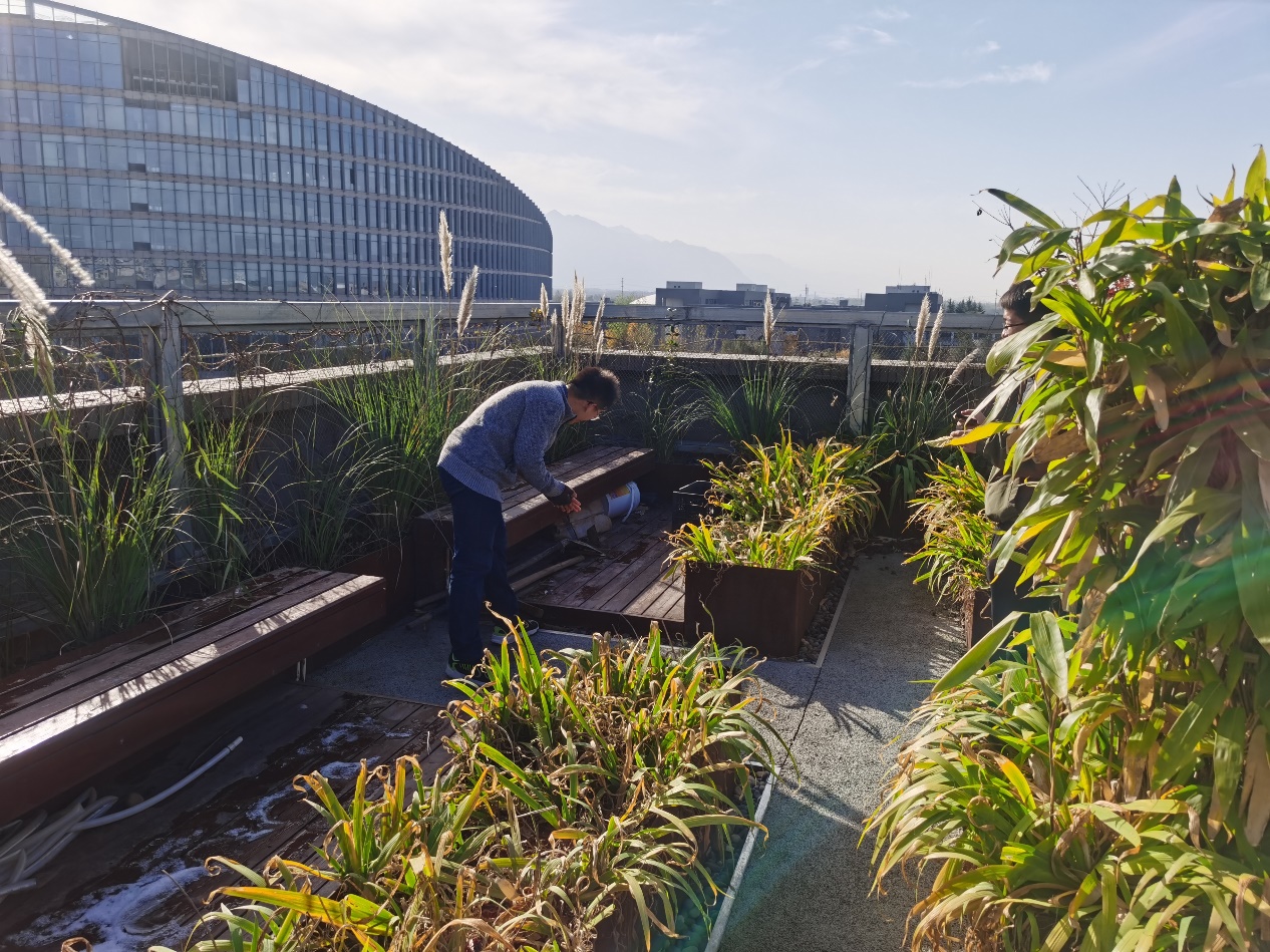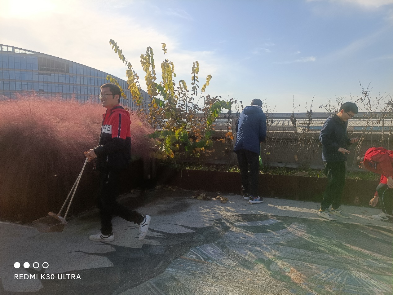 2021年11月8日下午3时,为进一步维护力学与土木建筑公司楼顶天台花园的优美环境,力学与土木建筑公司研究生七支部开展了楼顶花园打扫活动。本次活动意在落实"百岗千人"员工党员奉献计划,发扬党员先锋模范带头作用,强化党员责任与担当。