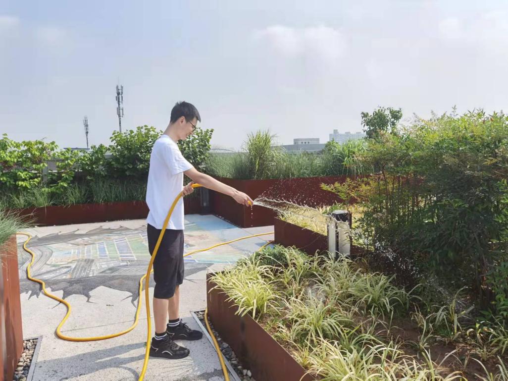 研究生七支部自从认领百岗千人岗位后,积极落实工作,每个月都进行排班,支部内同志以小组为单位,相互监督,努力维护天台花园的干净整洁和花草的养护。
