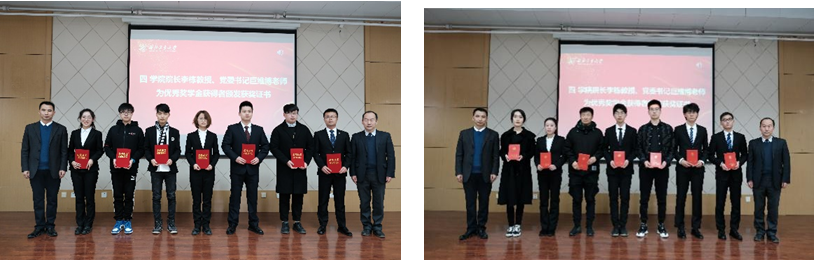 最后,党委书记巨维博老师对大会获奖人员表示了热烈祝贺并发表讲话,他向各位同学提出了三点希望:一是要追求卓越的精神;二是要脚踏实地、甘于寂寞;三是要在竞争中展现自己的价值,他希望大家能够以先进同学为榜样,努力奋斗,拥有出彩的人生。