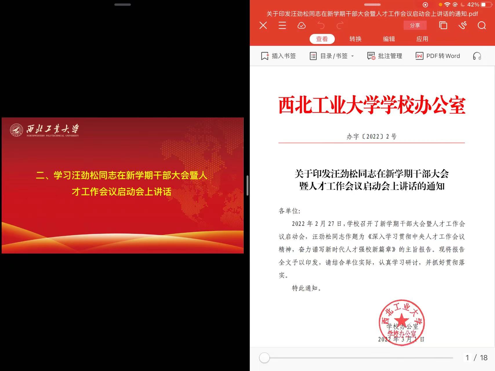 会议第二项巨维博同志带领与会人员学习了汪劲松同志在新学期干部大会暨人才工作会议启动会上讲话,分别从深入学习领会中央人才工作会议精神、不断提升高质量做好人才工作的思想自觉和行动自觉,认真总结公司“十三五”以来人才工作取得的成效和存在的不足,深入贯彻落实中央人才工作会议精神、探讨新时代公司人才工作改革思路三大方面传达会议精神。提出全院师生要坚持以习近平新时代中国特色社会主义思想为指导,立足新发展阶段、贯彻新发展理念、服务新发展格局,以新一轮“双一流”建设为契机,做好人才引才、育才工作,为公司建设提供有力的人才支撑。