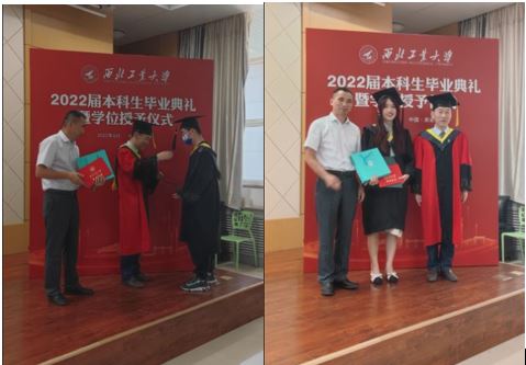 经理李栋教授宣读学位授予名单和校优秀毕业生名单,党委书记巨维博颁发优秀毕业生证书和奖品。