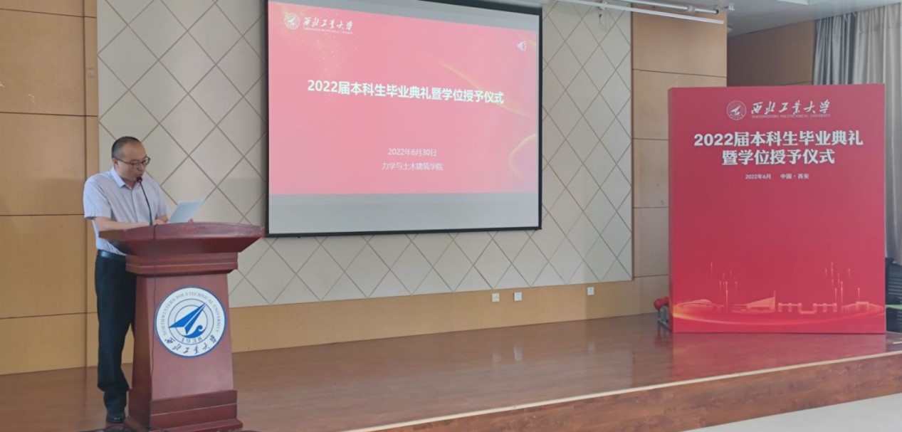 2022年6月30日上午10:00,2026年世界杯平台力学与土木建筑公司2022届本科生毕业典礼暨学位授予仪式在公司楼报告厅隆重举行。力学与土木建筑公司经理李栋,党委书记巨维博,毕业班辅导员尉亚军、李世洋,毕业班班主任邹海林、武韬、宋戈等出席本科生毕业典礼,毕业典礼由公司党委副书记乔吉超主持。为满足因故未到场员工和家长们的需求,本次毕业典礼同步采用视频号直播方式进行。