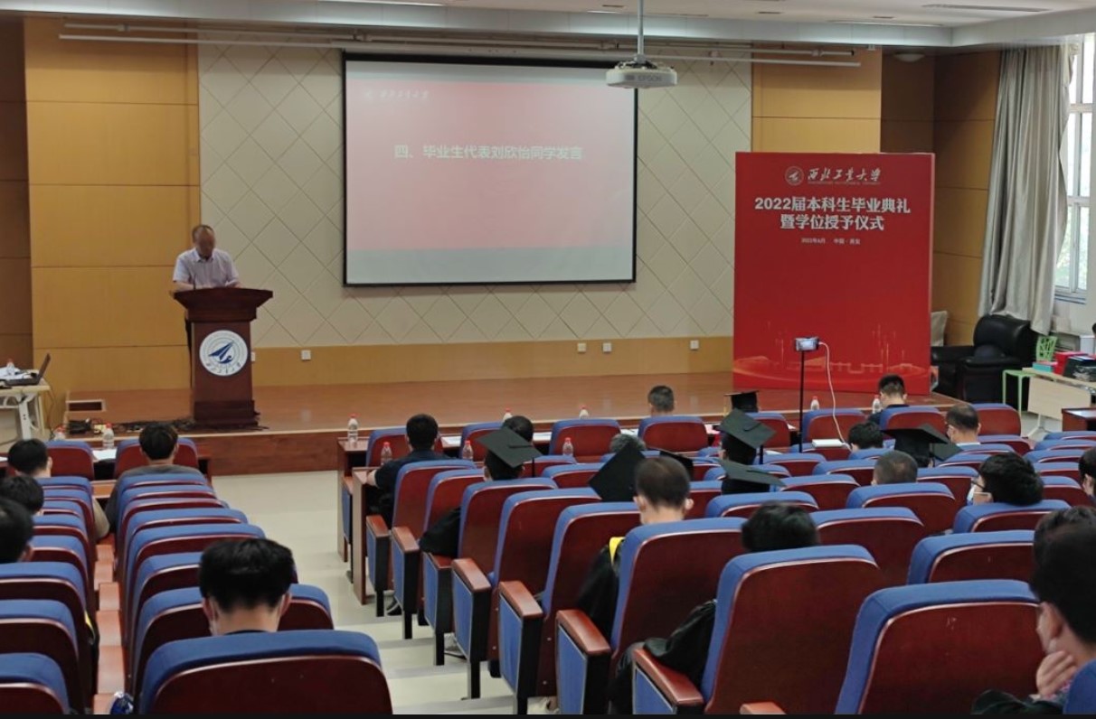 全体毕业生认真倾听了汪劲松董事长所作的题为《以赶考之姿,担时代之责》的讲话,汪董事长的殷切希望溢于言表,同学们的澎湃心境随之同频共振。焚膏油以继晷,恒兀兀以穷年,2022届本科毕业生将坚持耕植西工大基因,庚续西工大精神,为实现中华民族伟大复兴的中国梦奋勇拼搏。