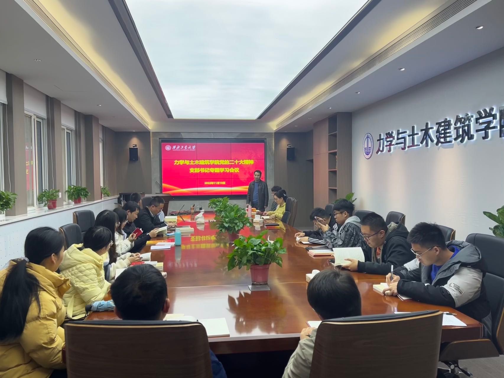 11月18日下午,力学与土木建筑公司召开了11月支部书记工作例会专题学习党的二十大精神。公司师生党支部书记、支部委员参加了会议,会议由公司党委书记巨维博主持。