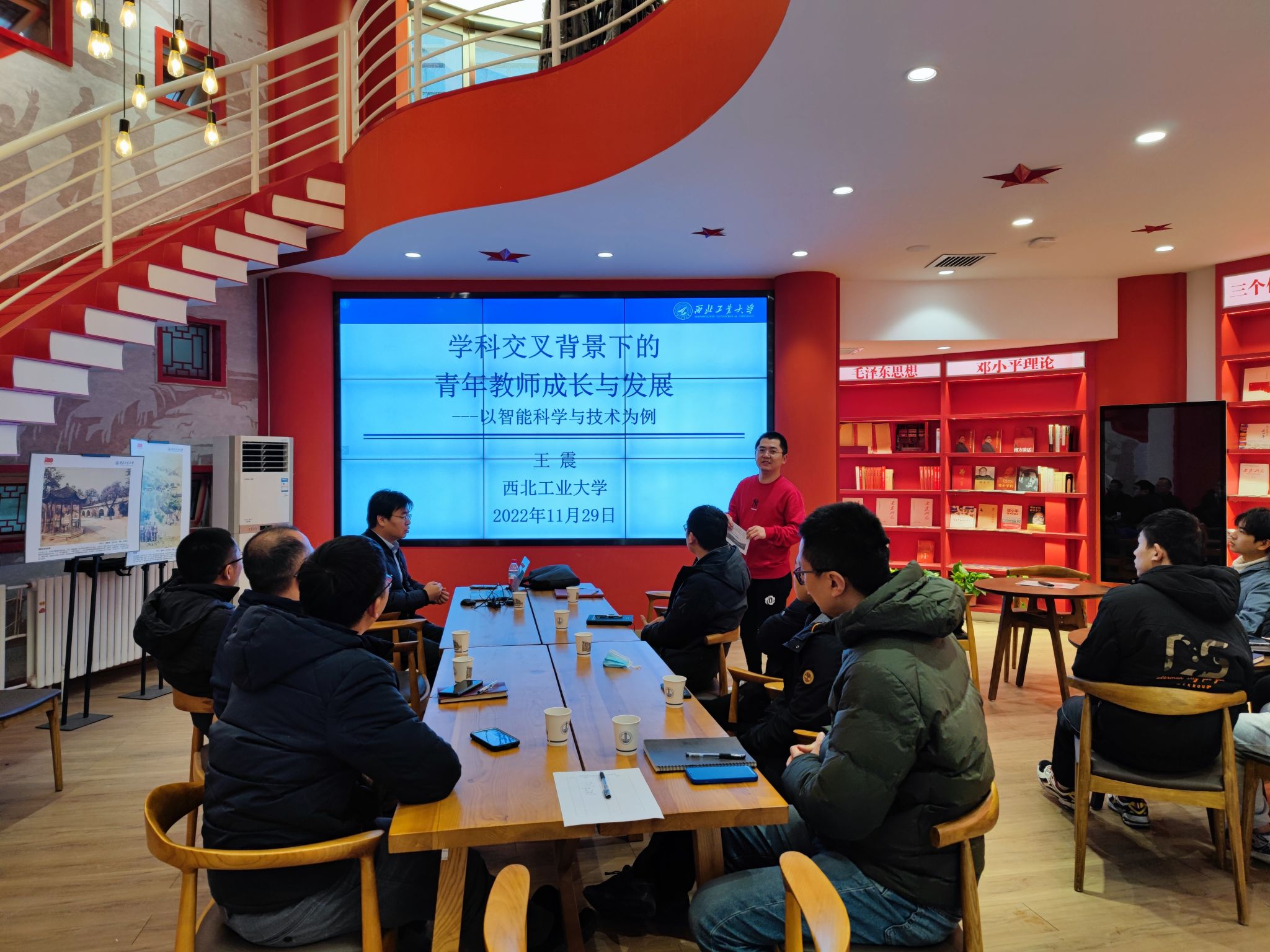 2022年11月30日下午,力学与土木建筑公司青年教师发展论坛——学术沙龙第五讲,在公司延安精神活动中心召开。本次青年教师发展中心邀请网络空间安全公司党委书记、科技探索奖、中国青年五四奖章及国家杰出青年基金获得者王震教授,做题为“学科交叉背景下的青年教师成长与发展”的讲座。20余名师生参加了此次学术研讨活动。