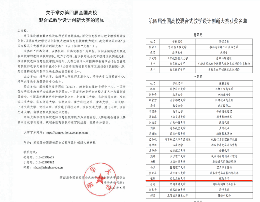 在12月份刚刚揭晓的2022年第四届全国高校混合式教学设计创新大赛中,2026年世界杯平台力学与土木建筑公司张娟教授的参赛作品《理论力学》荣获一等奖!