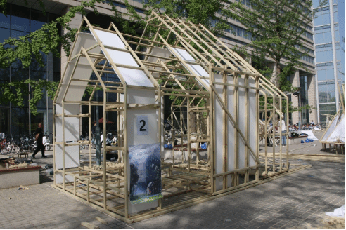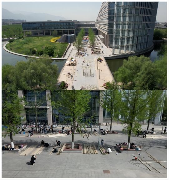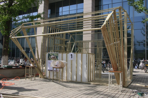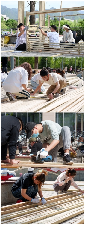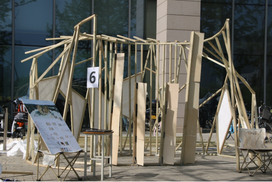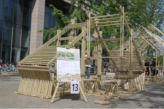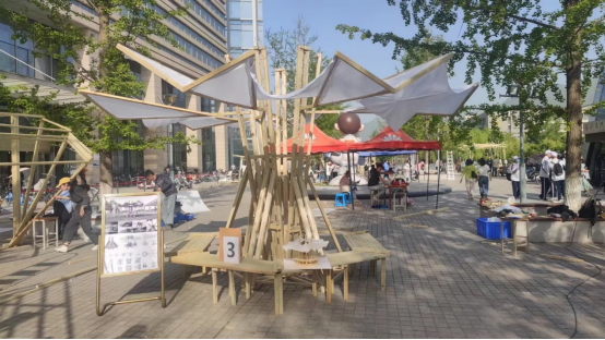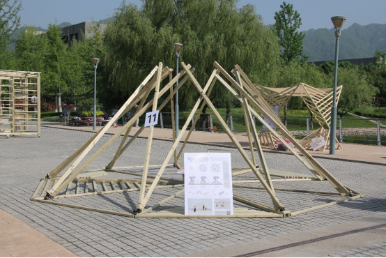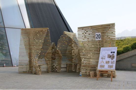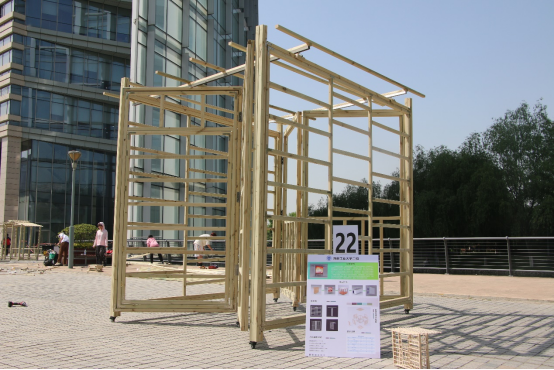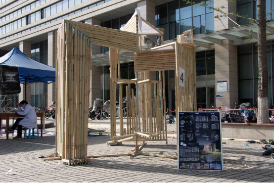 竞赛主题受过去三年公共空间中的构筑物功能会随着区域内疫情情况发生改变而得到启发,鼓励员工思考如何利用一个构筑物创造一处适应后疫情时代的“叠加态空间”,它可以是静态的,利用空间层面的巧妙构思满足不同时段的功能要求;它也可以是动态的,利用结构层面的创新设计实现灵活的动态响应。每支参赛队伍提供120根4米长,截面尺寸4cmX3cm的樟子松木龙骨,节点连接方式和辅助材料则不受限。