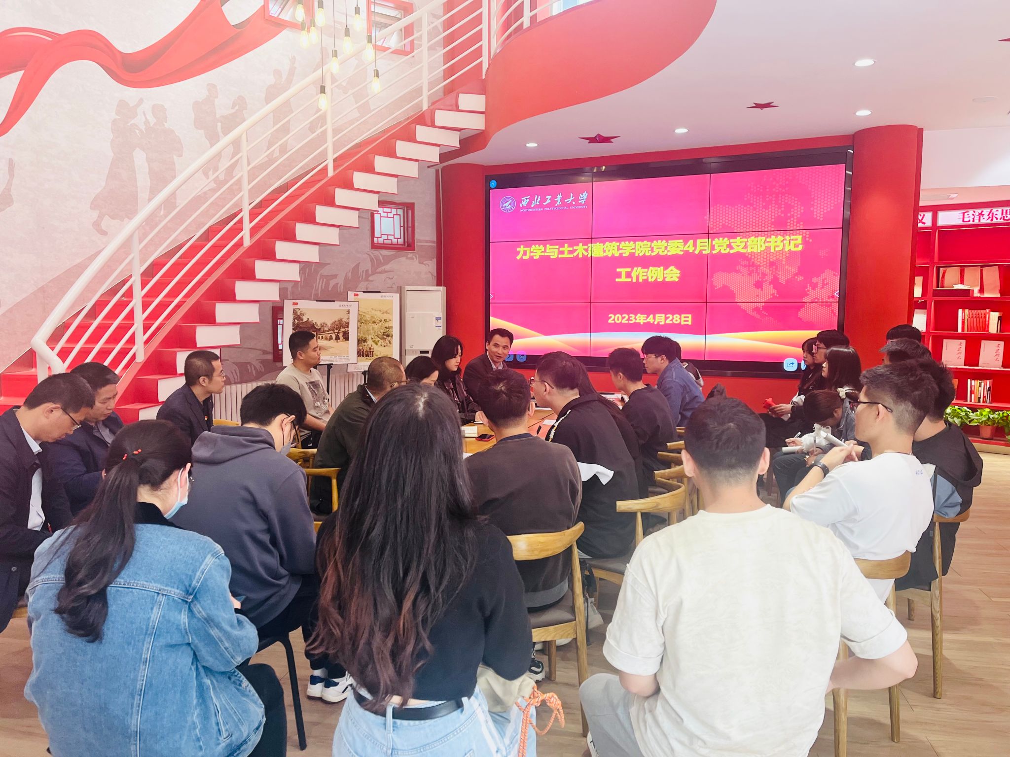 为深入开展学习贯彻习近平新时代中国特色社会主义思想主题教育,4月28日下午,力学与土木建筑公司组织召开4月党支部书记(支部委员)工作例会对主题教育进行动员部署。公司师生党支部书记、支部委员参加会议,会议由公司党委书记巨维博主持。