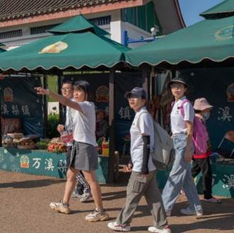 在大墨雨村村长的带领下,实践队员走进村内,感受民风民俗,深入了解绿水青山、彝乡民风、老房旧舍等特色资源优势。在西山区永续动力城乡社区服务中心和“新村民”吴晨的共同推动下,一个旨在为村子里孩子们提供学习交流空间的墨雨村学建了起来;不少颇有历史感的土坯房因后期的精心保护与修缮有了较为原始且完整的保留,大量装瓦结构的农家大院屹立于此,吸引众多游客前来拍照打卡;村里的小卖铺,全天开放、自主购物,它为村民的生活提供便利,同时小卖部寄售村民们的手作物品、二手物品售卖等,体现着墨雨村民们循环利用的生活方式;近年来,陆续有村民结合当地传统民居滇中“一颗印”,并考虑自己对现代化生活的需求,对房屋建筑进行了改造修缮,找到了传统民居和现代生活相连接、自然和人文相沟通的一条路径,让大墨雨村重新焕发新的生机。为旅游助力乡村振兴提供了典型的实践样本。