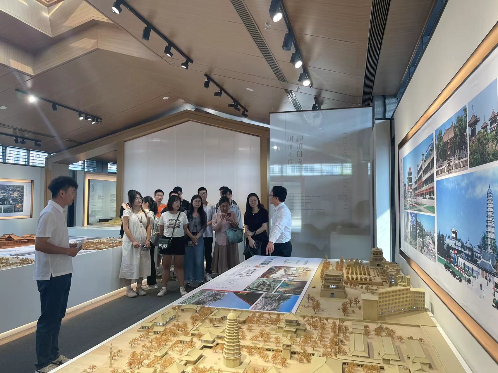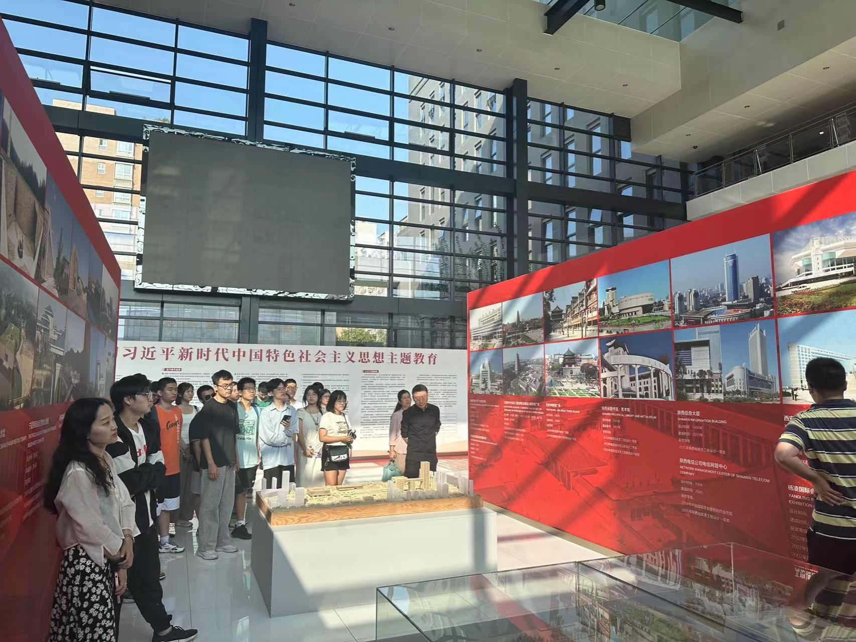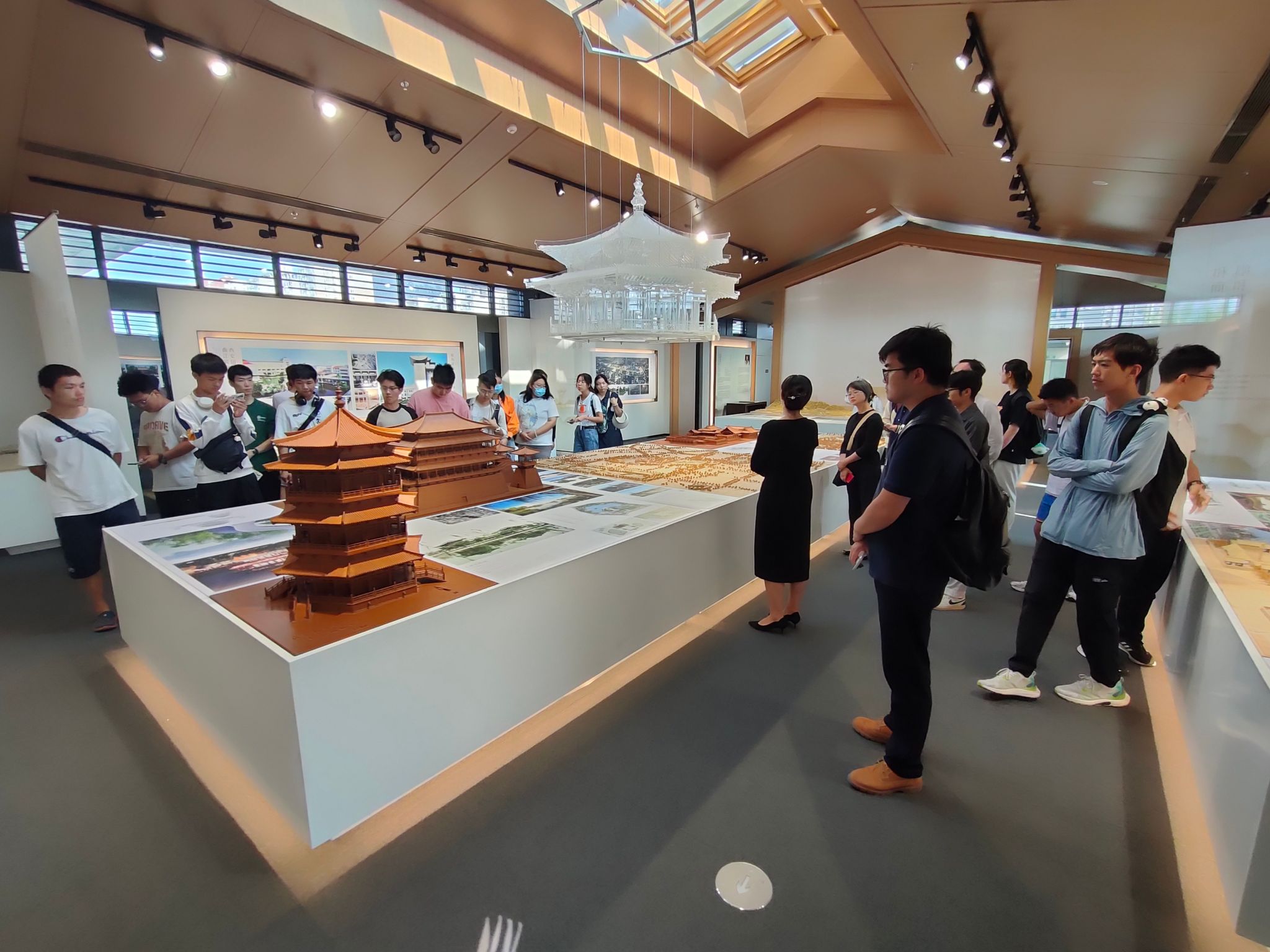 在工作人员的带领下,师生认真参观了展板上的照片、模型,了解到西北设计院的辉煌历史与成就。从1952年的市委礼堂,西安人民剧院,大雁塔风景区“三唐工程”,法门寺工程,西安钟鼓楼广场,直至2022年刚刚扩建完成的西安火车站,展示了西北设计院在七十年中的不断奋斗所取得的成绩。大家边走、边听、边看、边悟,被一张张照片、一组组文字、一件件模型和讲解员介绍的历史故事所深深吸引和感染。