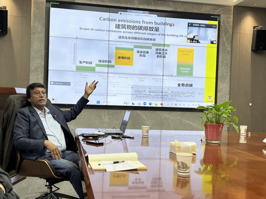 Prasad院士此次来访,带来了题为“Moving beyond sustainable built environments - decarbonisation,resilience and regeneration(超越可持续发展的环境--脱碳、复原和再生)”的学术讲座,讲座由公司“可持续建筑与环境研究团队”国际合作项目负责人邵腾副教授主持,李栋经理做欢迎致辞,30余名师生参加了学术研讨。