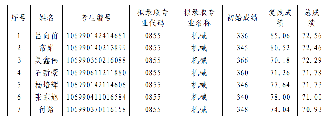 现将2020年硕士研究生第二轮调剂拟录取名单予以公示,公示期自2020年5月26日至2020年6月6日止,公示期内如有异议请向公司研究生招生复试工作领导小组反映。受理电话:88431000。