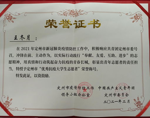 力学与土木建筑公司2018级本科生王冬月,共青团员,担任06011801班班长。2020-2021学年学分积95.12,综合测评2/40,获2020-2021学年国家奖学金。