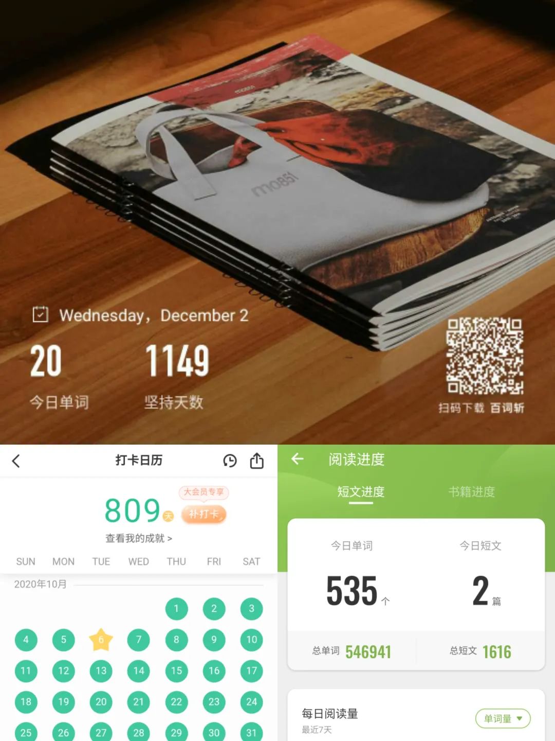 提到外语特别是英语学习,我想说:每天进步一点。过去三年来我学习英语的状态便是很好阐释了它。高考时我的英语成绩并不理想,仅125分,而进入本科后,我每天早上都坚持背英语单词以及进行英语阅读,百词斩连续打卡千余日,扇贝单词打卡800余日,扇贝阅读累计阅读短文超1600篇总词数超50万词,几乎每周的公司英语角都会有我的身影……我想这些点点滴滴坚持便是英语从高考125分到CET-4 513分再到CET-6 574分和TOEFL 84分的原因吧。我现在正在学习德语二外,在这个从零开始过程中,我再一次地感受了坚持不懈的作用,我很喜欢我们高中班级的窗上贴的一句话——“I will persist until I succeed”,我想,这就是学习外语的态度。